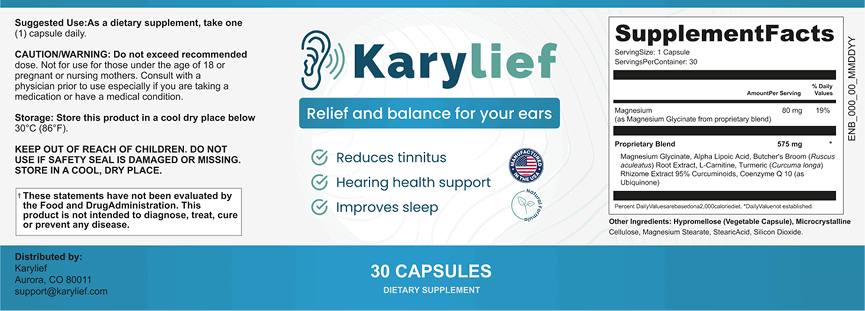 Karylief is an innovative dietary supplement that works to reduce tinnitus (ringing in the ears) and improve overall hearing health.